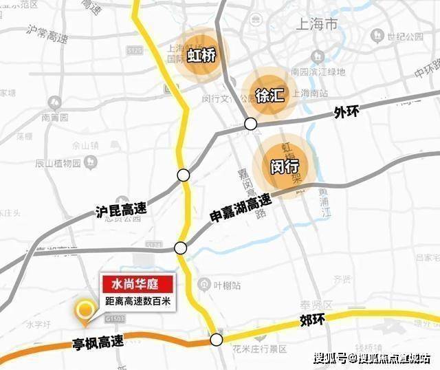 首先水尚华庭直线距离亭枫高速收费站仅约数百米,驶入亭枫高速可快速连接上海绕城高速,再向北可以转申嘉湖高速和沪昆高速,到徐汇、闵行、虹桥相对比较便利。