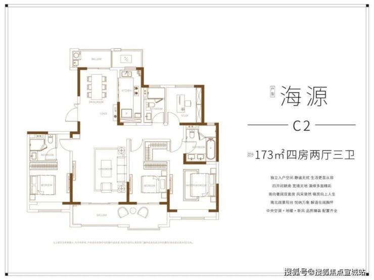 此外还有173㎡的户型更为优秀,3房朝南,双联阳台大开间,采光极好。