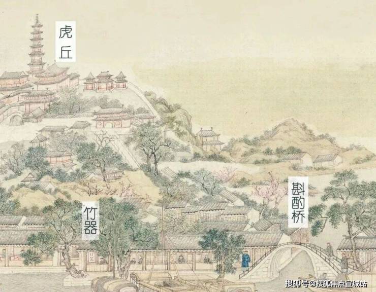康熙年间,论经济发达程度,苏州已经是全国之首。到了乾隆时期,在社会、文化、经济等各方面的发展都达到了顶峰,故此,康熙、乾隆两位皇帝分别六下江南,每次都必定来苏,来苏则必游虎丘,乾隆更是三宿虎丘,可见当时的虎丘,定是姑苏繁盛的中心之处。