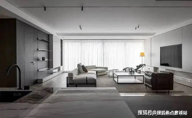 黑色躺椅和沙发都是皮革材质,悄悄释放高级感.个性和惬意的生活场景结合起来,家具的几何造型,增加空间的艺术层次,和整体呼应.