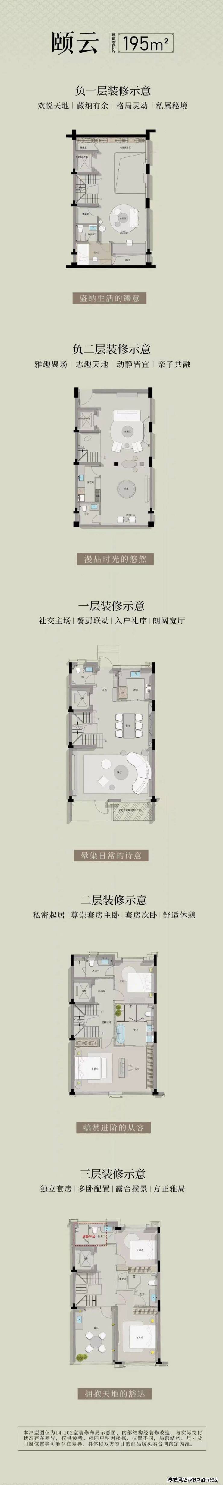 195㎡中间套:主打“紧凑实用型院墅”,一层带阔南向私家庭院,推门即见绿植;地上三层空间功能分区清晰,三层预留专属露台,可打造观景或休闲角落;地下空间层高5.8米,支持灵活拓展为两层,配备双采光井,有效改善地下阴暗问题,避免传统地下室潮湿弊端。