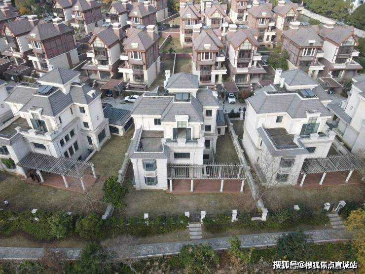 来看一下实拍图,别墅长这样:前排法式风独栋、后排英伦双拼~