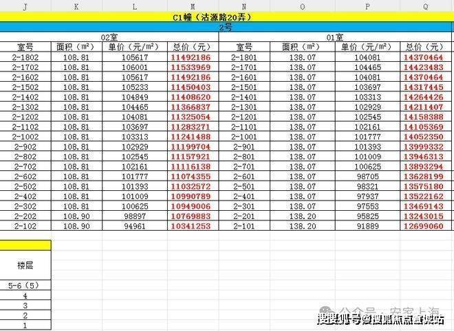 最新一房一价表: