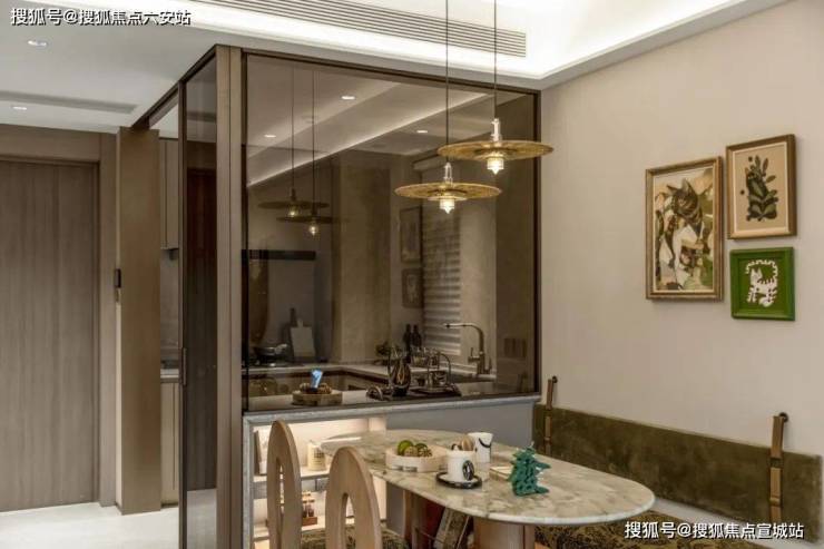建面约95㎡的户型,阳台客厅一体贯通.冰箱通过“S墙”外置,实现了完整的U型厨房操作台面;同时,厨房与餐客厅之间巧妙配置了隔断式玻璃墙,打破空间的视觉边界,一抬眼就看得到客厅,让家人们得以共享欢乐烹饪时光.
