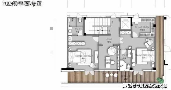 卧的斜形顶与整体空间相呼应,以质感深色作为主色调,营造出沉稳内敛的休憩氛围。
