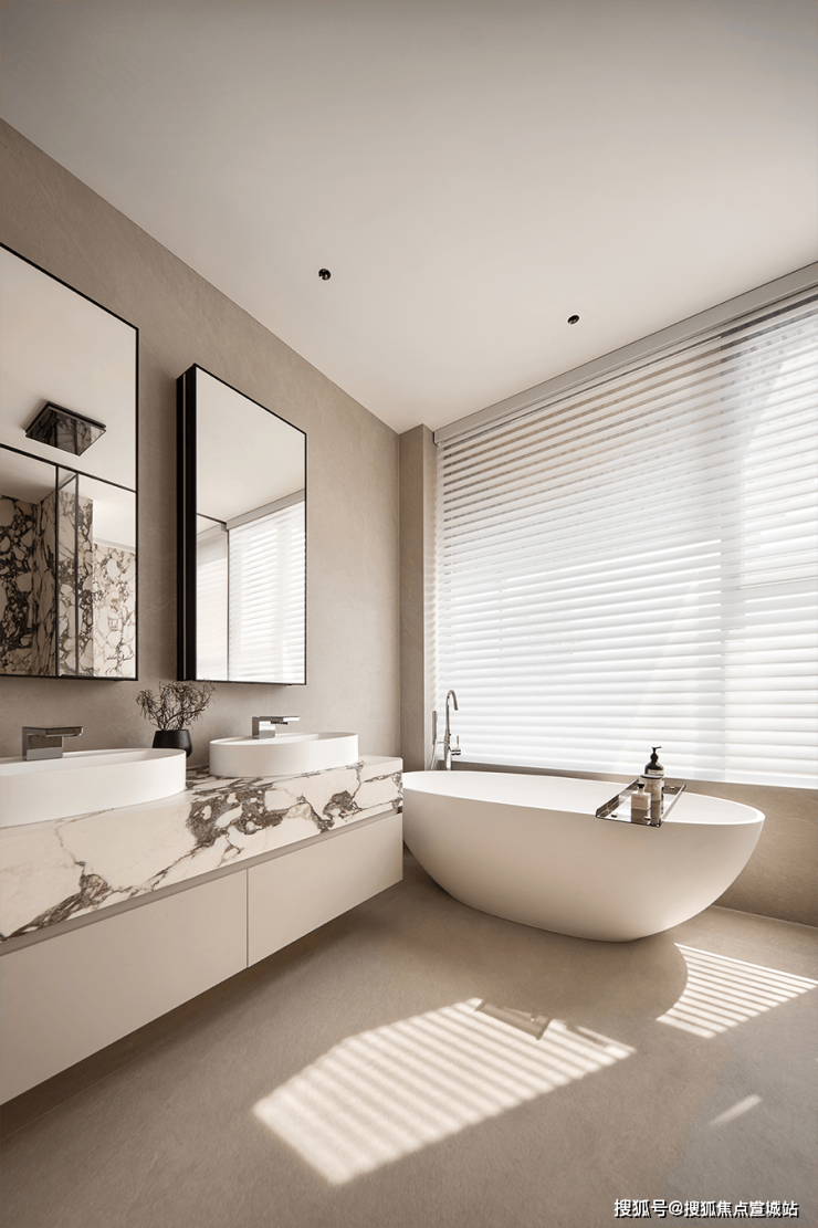主卫宽敞明亮,配备有独立的浴盆,为居住者创造了独属的休闲放松空间。