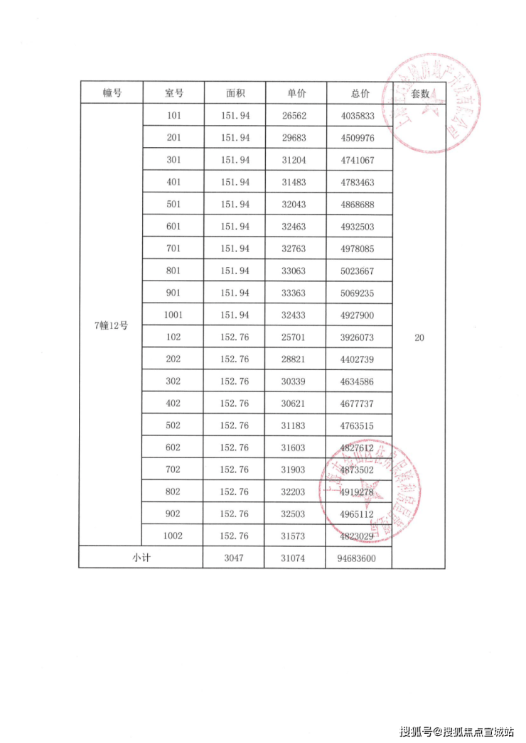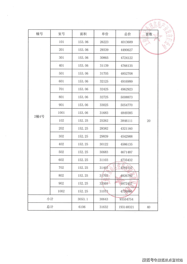 项目一房一价表
