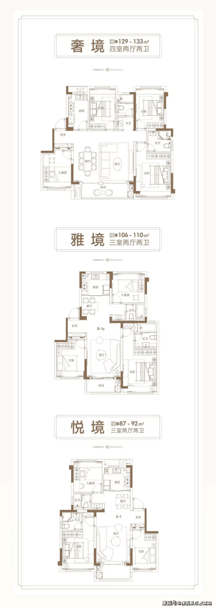 建面约90-129㎡精装3-4房