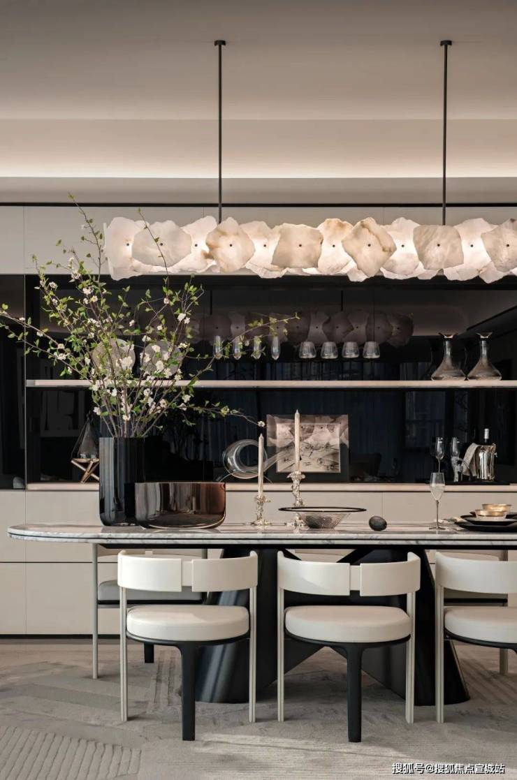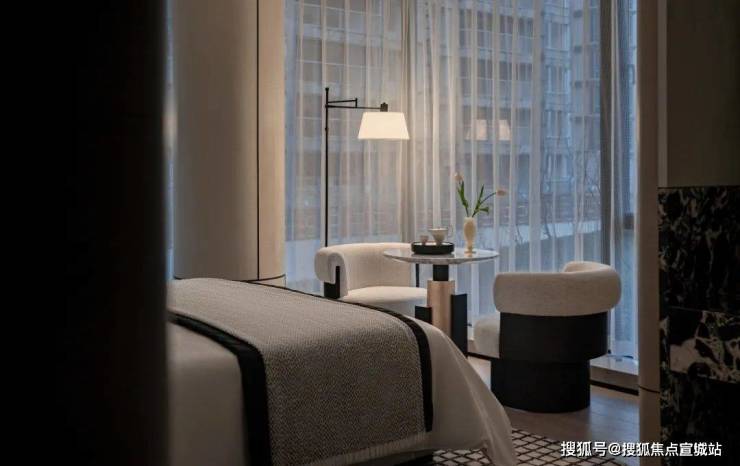 室内设计融合了香奈儿风格的温柔都市时尚感。整体色调以黑白灰为主,既有现代风尚的冷静与理性,又有都市生活的时尚与雅致。