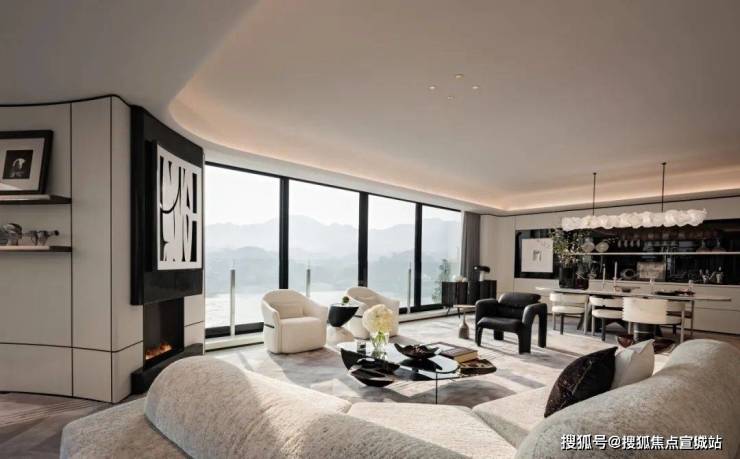 在这开阔而明媚的大平层空间里,270°的超大全景采光面如同一扇巨幅的画卷,将室外的绮丽景致无缝融入室内,让自然光线毫无拘束地自由穿梭。我们将沙发面向这无垠的窗景安置,让身心得以最大限度地沉浸在这份视觉盛宴之中。