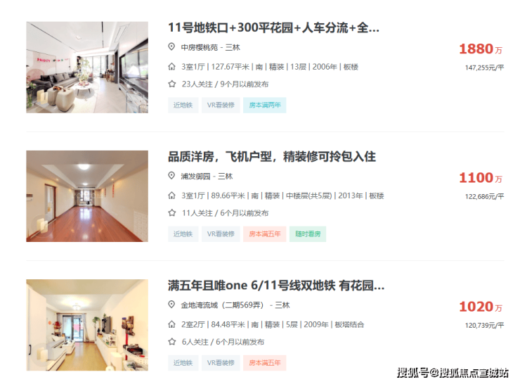 板块内部,由于三林板块规划起步晚,「永泰三里城」周边几乎都是次新电梯房,板块内二手房挂牌均价9万/㎡左右,不少户型较好的楼盘甚至能跑上10w+。