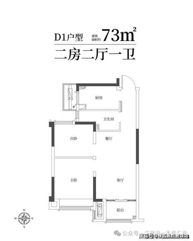 建筑面积约73㎡舒适两房一卫,年轻家庭的向往
