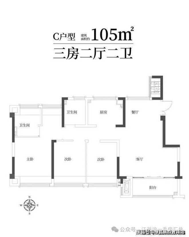 建筑面积约105㎡宽厅三房两卫,四开间朝南,舒适栖居理想