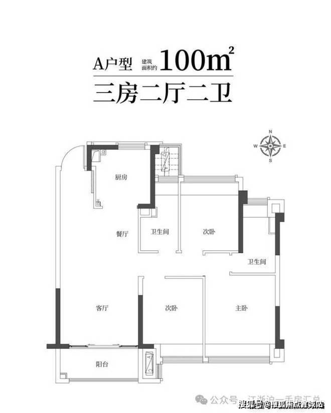建筑面积约100㎡雅致三房两卫,满足二娃时代