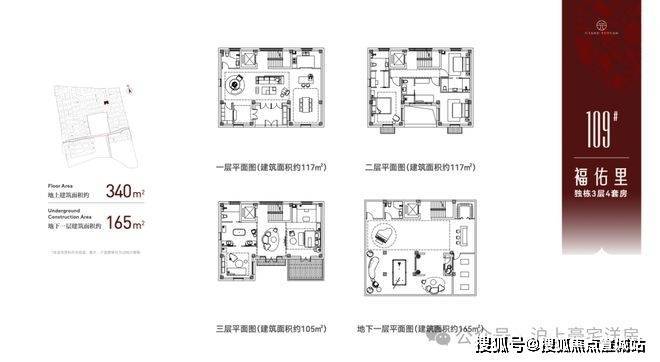 地上建筑面积约340㎡户型,地下一层建筑面积约165㎡。