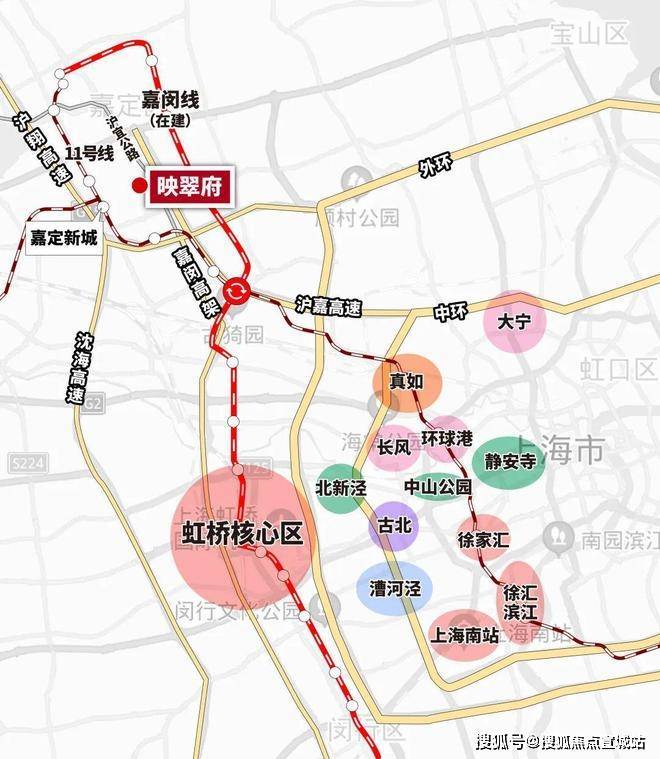 换句话说,整个嘉定新城中, 映翠府可以更方便、更快捷的行驶到嘉闵高架、沪嘉高速。