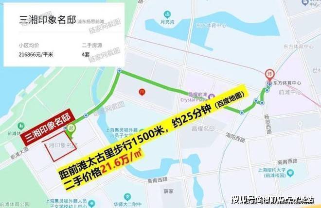 从前滩九宫格走到前滩太古里需要足足25分钟。而前滩九宫格的二手豪宅价格高达21万+(今年2月链家成交的一套三湘印象名邸低区单价17万+)。