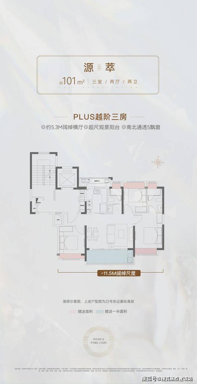 现场开放的是建面约101㎡三房拥有约5.3米横厅,一梯两户设计之外每个房间都设计有飘窗空间更大: