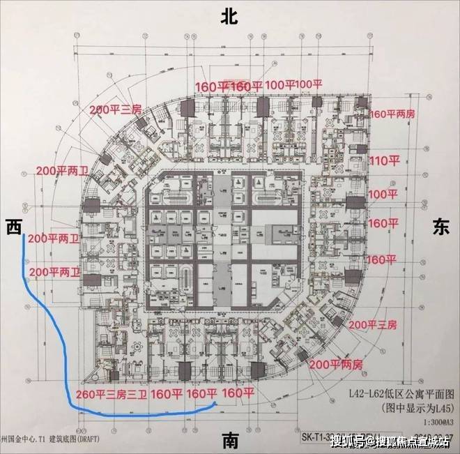 T1地下5层,地上128层,高达450米(包含甲级办公楼,高端住宅公寓、特色精品尼格罗酒店)