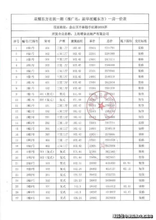 一房一价表如下:
