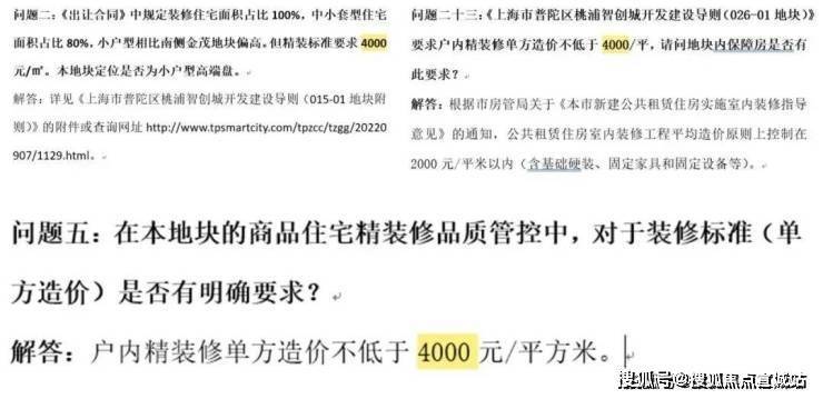 其实早在项目土拍阶段,普陀金茂府就要求不低于4000元/平方米精装。