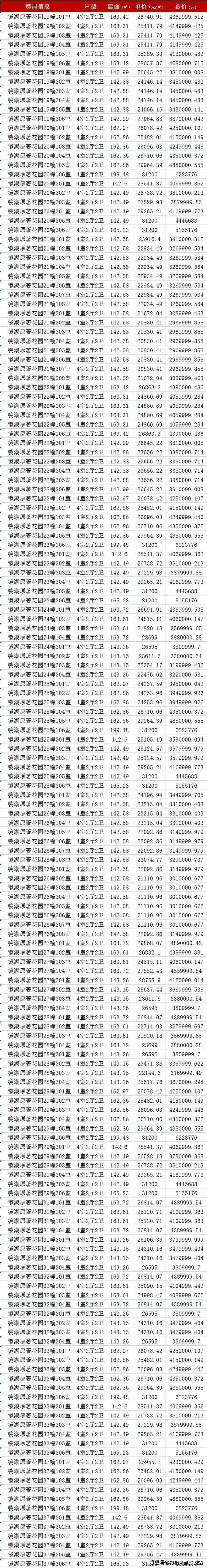 镜湖原著一房一价表
