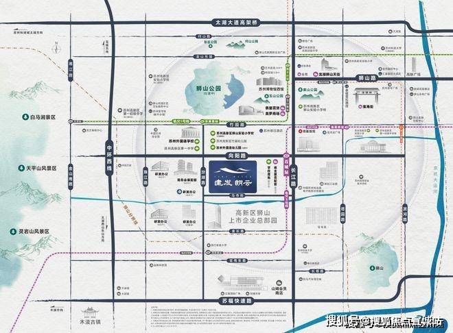 生态环境:被 “三山五园” 环伺,三山指天平山、灵岩山、狮子山,五园包括玉山公园、狮山公园(在建)、索山公园、运河体育公园、横山体育公园。