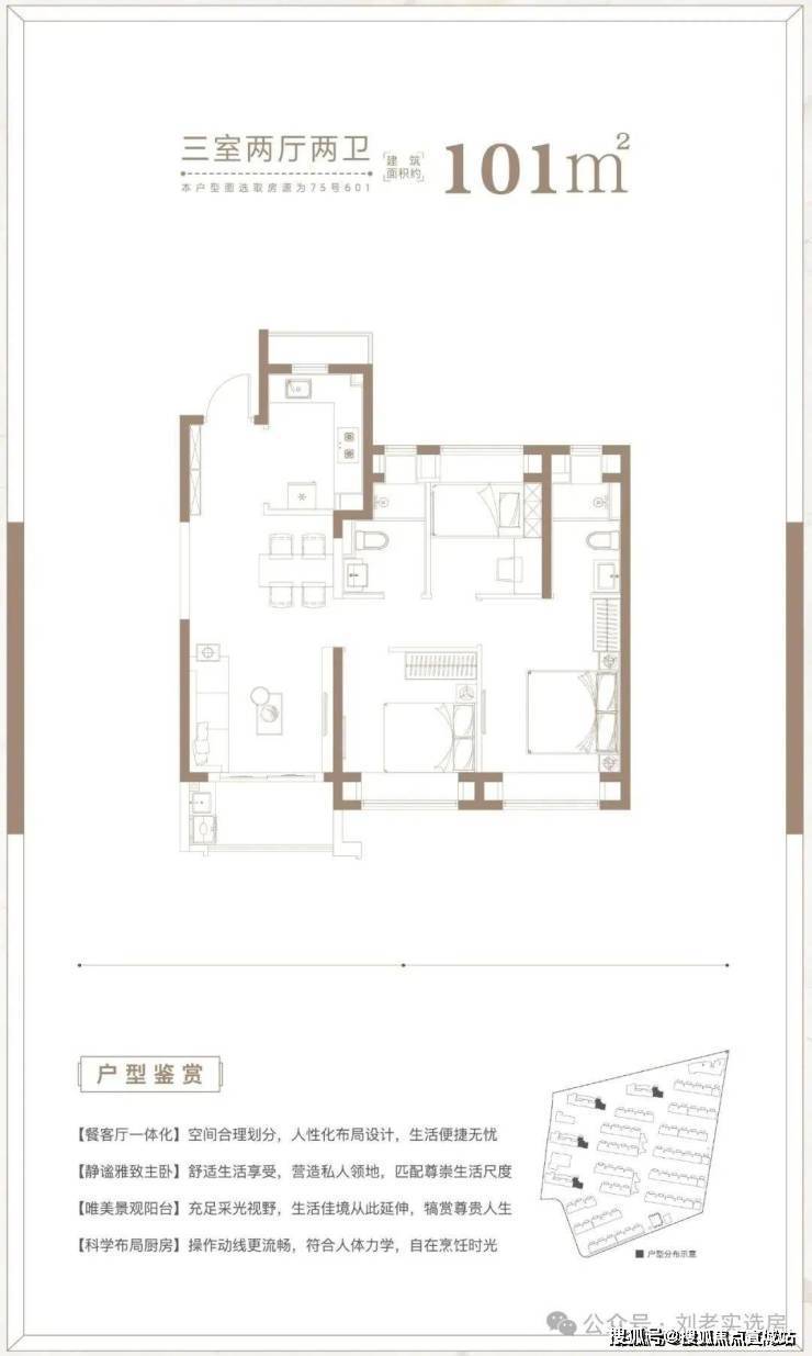 建面约101㎡3房2厅1卫,约101㎡B户型是做到了三开间朝南+主卧套房设计+动静分离+全卧室带飘窗,采光极佳的大3房。