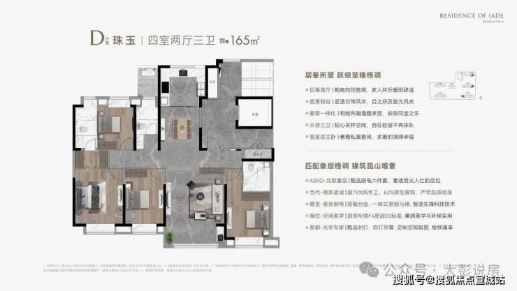 D户型 珠玉丨四室两厅三卫 建筑面积约165m²