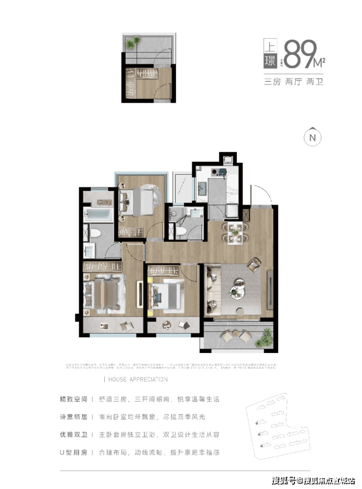 89㎡三居:总价约155万元(单价约1.7万-1.8万/㎡)