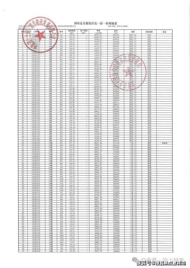 项目一房一价表