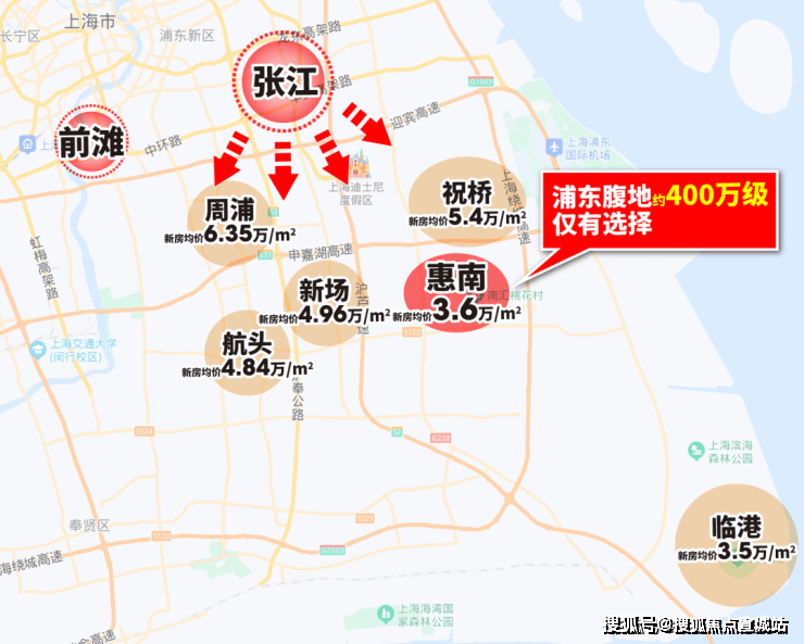 项目东北方向约10公里是中国商飞浦东基地和国际航空城,西北方向不远处就是张江科学城南部核心,可以享受到一线辐射红利。