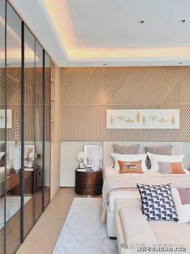 主卧和客厅正对着,波浪质感的墙壁增添了触感和设计感.作为一个休息区,它也具有充足的安静的氛围.上海闵行天宸国际社区售楼处电话☎:400-8558-334