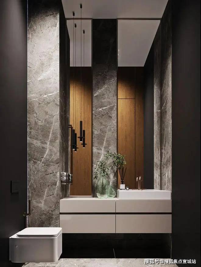 Thebathroomisasimplemarblewallstructure,andthewoodencabinetaddsahigh-gradelightluxurystyletothewholespace.上海闵行天宸国际社区售楼处电话☎:400-8558-334