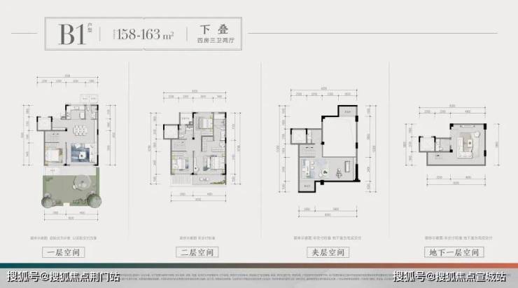 以建筑面积约160㎡的户型为例,四室两厅三卫的设计,面宽达到了惊人的约16.4m(双层),足以媲美市面上一些200方的大户型叠墅。户型整体尺度感很强,尤其是主卧,空间豪华,甚至还规划有一个“X”空间,娱乐、办公、休憩随意切换。