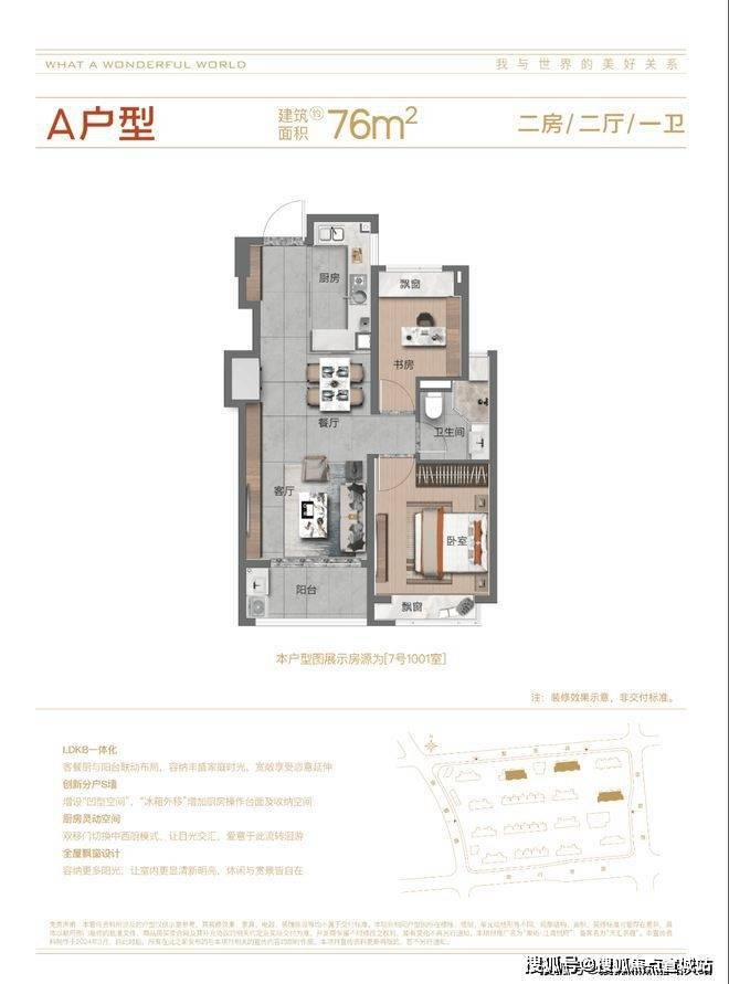连建面约76㎡2房都能做到创新分户S墙,市面罕见,内嵌收纳,也可将冰箱外移,释放厨房空间,营造合理餐厨动线。