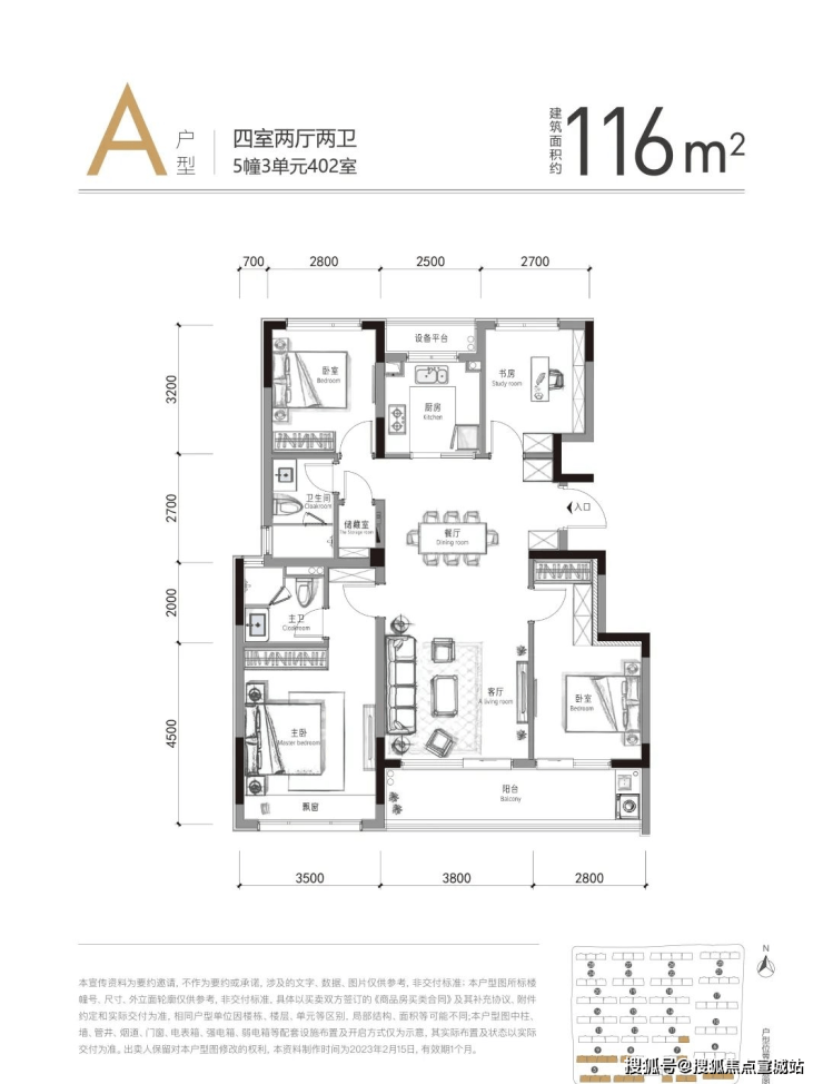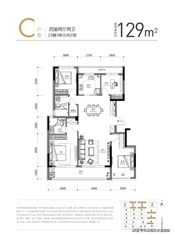单价约17000元起,总价约208万起。