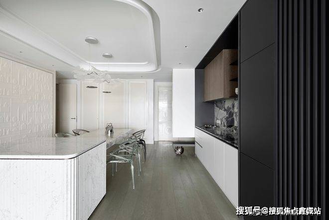 就餐厅暂离传统的固定设计方式,采用更新颖的设计方法缔造潮流惊喜.餐桌联合岛台,扩展用餐面积,赋予更加灵动洒脱的形态.另外通透亚克力支柱呈现的隐身姿态,赋予空间更温馨淡然的氛围.