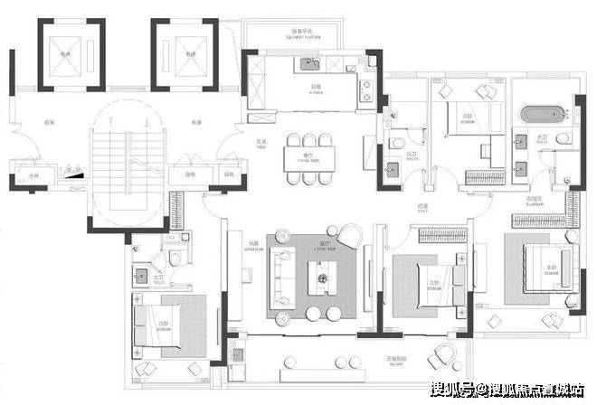 建筑面积约165㎡四房三卫户型