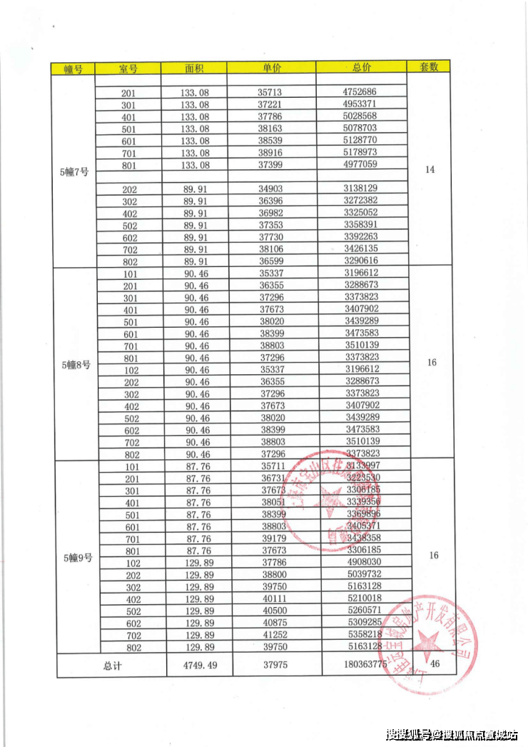 项目一房一价表