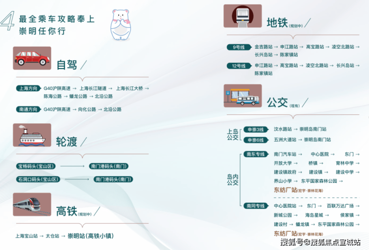 14、交通:高速G40沪陕高速,S7沪崇高速,地铁:轨交崇明线(建设中)高铁:北沿江高铁(建设中)规划高铁小镇。