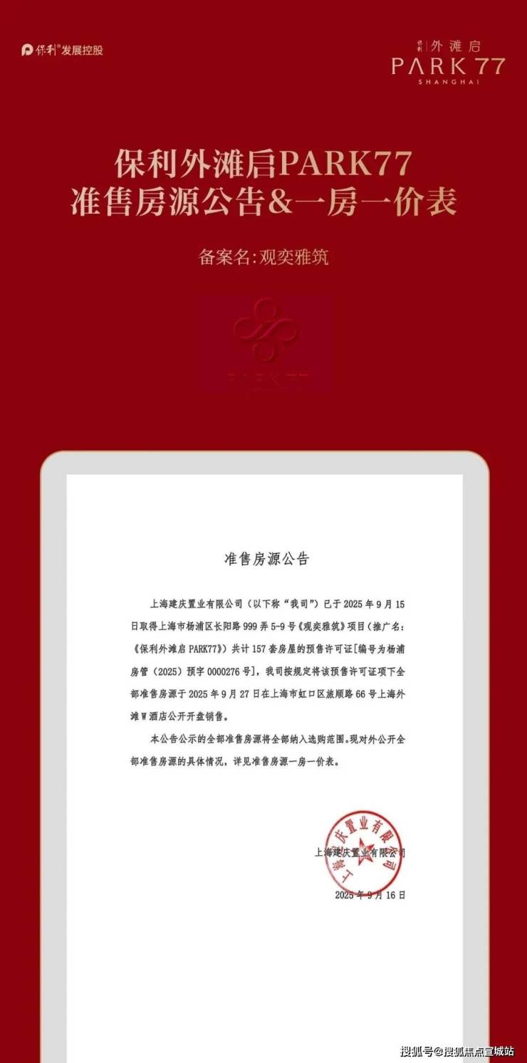 延续外滩系热潮!内环内【保利外滩启PARK77】首开劲销16亿!少量约99-137m²3-4房,总价1136万起!