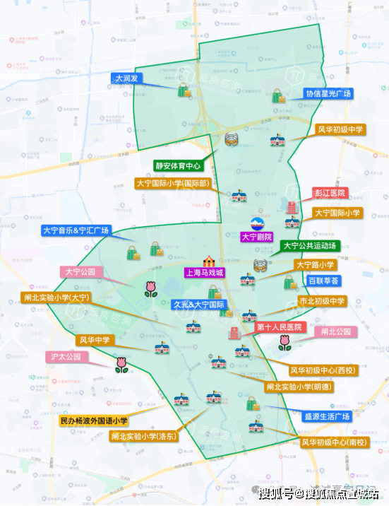 大宁这个小板块里,坐落着6所公办小学、3所公办初中,1所九年一贯制,教育网络非常发达,再加上,本身就有的商业格局也散落的到处都是。