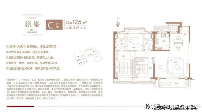 作为一个纯粹的改善型社区,虹桥璀璨领峯的主力户型为建面约105-125㎡三房,如此集中的面积段,不仅保证了社区内圈层的相对统一,对于后续社区的管理也是润物细无声。