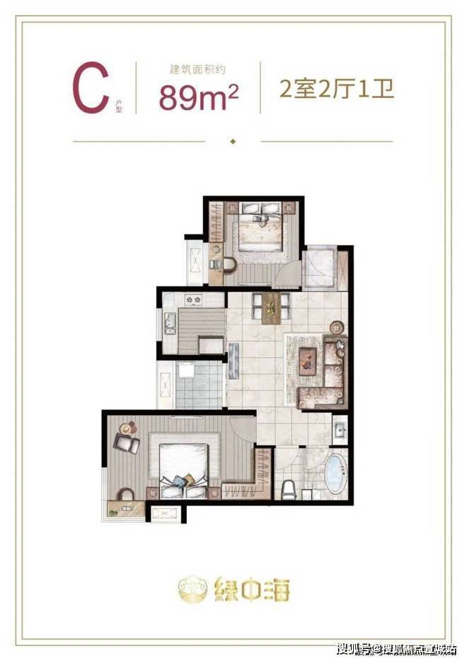 建面约87-89平2房2厅1卫