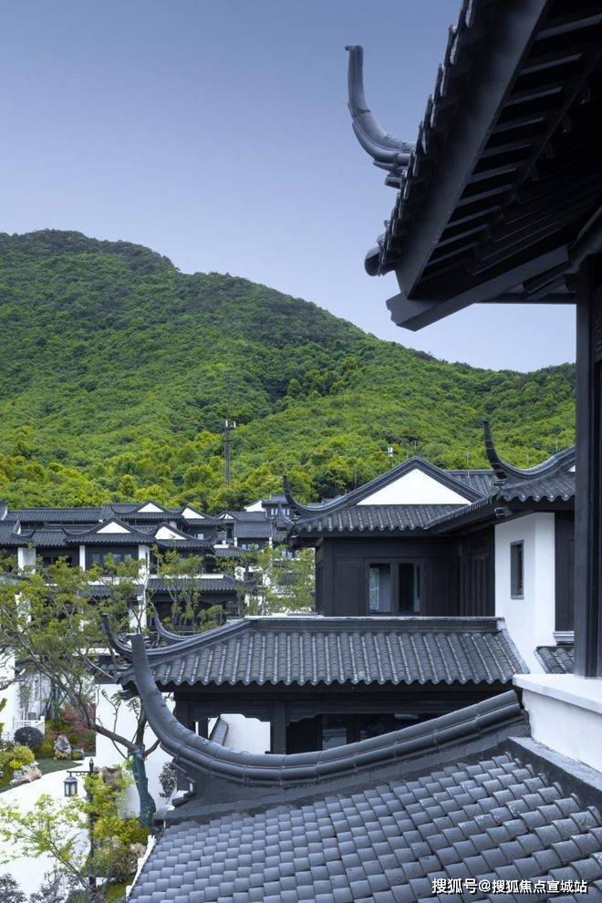 中式建筑美学采用传统飞檐、院落布局,如萧山项目的“园、院、居”三重空间设计,户户带花园.