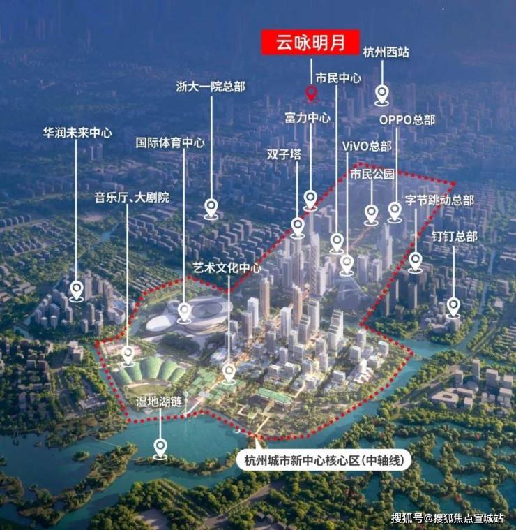 2022年2月,云城和未来科技城被认定为“杭州新中心”,与第一中心武林和湖滨地区、第二中心钱江新城、奥体板块并列同为市级中心。