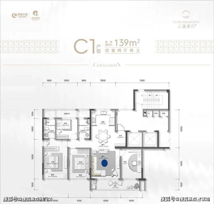 约139㎡也是边厅四房户型,套房主卧、独立玄关、超长阳台...舒适感满满。