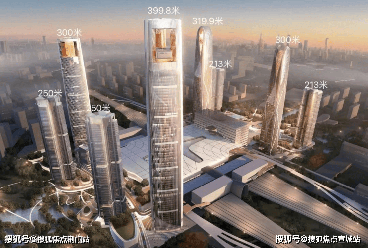 云城的西站规划了8幢超高层 — 1幢399.8米,1幢319.9米,2幢300米,2幢250米,2幢213米,也已经陆续开建。