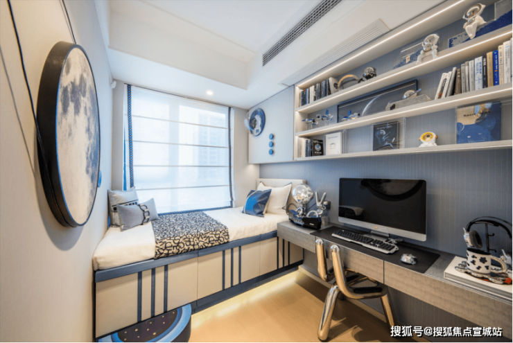 三开间朝南设计,主次卧均带飘窗,北向功能书房,同样带有飘窗设计,提升了空间的功能延展;